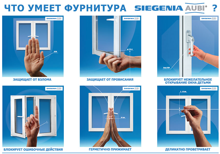 Компанія SIEGENIA GRUPPE пропонує широкий спектр продукції, який робить вікна і двері надійними і довговічними. Віконна фурнітура від SIEGENIA крім високої функціональності і надійності відповідає високим вимогам комфортної експлуатації і дизайну. При цьому розкривається потенціал до економії з моменту виготовлення до монтажу за рахунок продуманої логістики і упорядкованого технологічного процесу.